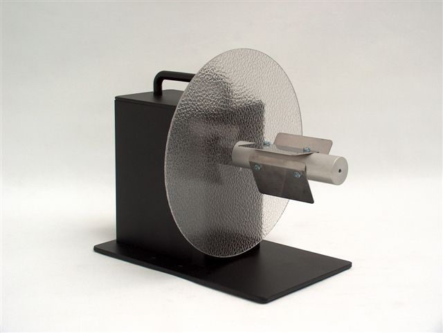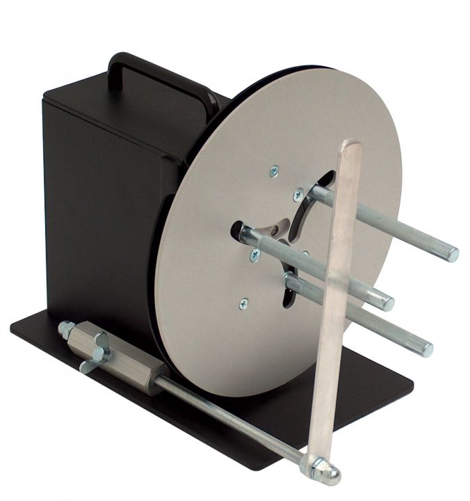 MC11 er en all-round etiketopruller med justérbar kerneholder og variabel hastighedsregulering (placeret på strømforsyningen). Du bestemmer således selv hvor hårdt oprulleren skal trække i etiketbanen. Her vist med justérbar paperguide.